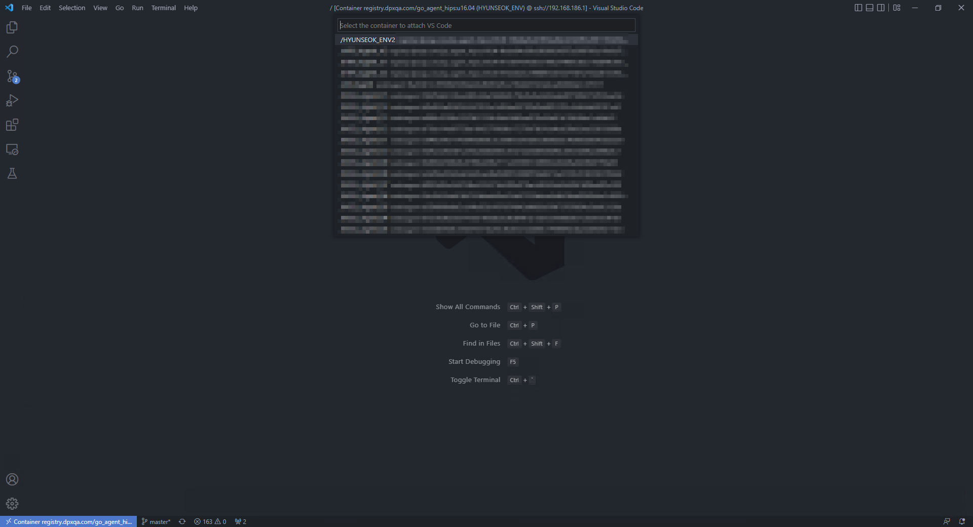 • 설치가 완료되면 Docker 가 구동 중인 서버에 VSCode에서 ssh로 접속합니다.